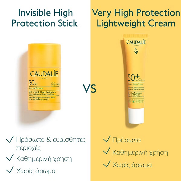 Caudalie Vinosun Protect Invisible Stick SPF50, Αντηλιακό Stick για Πρόσωπο, Χείλη & Ευαίσθητες Περιοχές – 15g