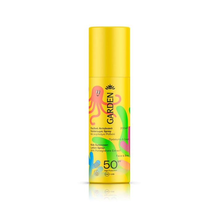Παιδικό αντηλιακό γαλάκτωμα σε spray για πρόσωπο και σώμα με εκχύλισμα ροδιού και βιταμίνη Ε. Προστατεύει αποτελεσματικά από την ηλιακή ακτινοβολία και είναι ανθεκτικό στο νερό και τον ιδρώτα. Εμπλουτισμένη σύνθεση που περιποιείται και ενυδατώνει εντατικά την ευαίσθητη παιδική επιδερμίδα.