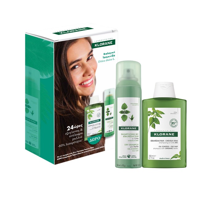 Klorane Promo Dry Shampoo, Ξηρό Σαμπουάν με Τσουκνίδα για Λιπαρά Μαλλιά – 150ml & Δώρο Σαμπουάν με Τσουκνίδα για Λιπαρά Μαλλιά – 200ml (1σετ)
