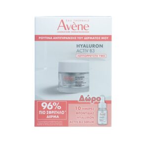 Με την ηλικία επιταχύνονται όλα. Τα κύτταρα γήρανσης εξαπλώνονται και το δέρμα λειτουργεί σε αργή κίνηση. Τα Δερματολογικά Εργαστήρια της Avène δημιούργησαν την Aqua Hyaluron Activ B3 κρέμα-ζελ, συμπυκνωμένη σε καθαρό υαλουρονικό οξύ (υψηλού και χαμηλού μοριακού βάρους) και νιασιναμίδη (σε ποσοστό 6%) με στόχο την αντιμετώπιση της αιτίας της γήρανσης και την παράταση του κύκλου ζωής των κυττάρων*. Η επιδερμίδα γεμίζει, λειαίνει και ακτινοβολεί από την πρώτη κιόλας εφαρμογή. Έπειτα από 2 εβδομάδες, αναπλάθεται, γίνεται πιο σφριγηλή και οι ρυτίδες μειώνονται**. Η δροσερή και ελαφριά υφή της έχει ένα λεπτό άρωμα λουλουδιών και χαρίζει άνεση στο δέρμα. Μπορεί επίσης να χρησιμοποιηθεί ως βάση για το μακιγιάζ. Η κρέμα κυτταρικής ανάπλασης Hyaluron Activ B3 αποτελεί οικολογικό προϊόν περιποίησης του δέρματος, το οποίο περιέχει συστατικά φυσικής προέλευσης σε ποσοστό 91%, και κανένα ζωικής προέλευσης, ενώ διατίθεται σε επαναπληρούμενο γυάλινο βαζάκι.
