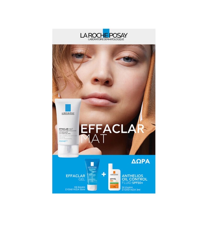 Διπλή αποτελεσματικότητα: Mατ αποτέλεσμα και μείωση της παραγωγής σμήγματος και των πόρων. Οι πόροι εξυγιαίνονται και συσφύγγτονται ενώ η επιδερμίδα λειαίνεται. Σε ειδική συσκευασία με Δώρο το Effaclar Gel 50ml, αφρώδες τζελ καθαρισμού και εξυγίανσης, τώρα με το νέο δραστικό συστατικό Phylobioma, με τη δύναμη της επιστήμης του μικροβιώματος. Εξισορροπεί το pH του δέρματος. Μαζί, Δώρο και το αντηλιακό Anthelios UVMUNE 400 Oil control fluid SPF50+ 3ml, νέα γενιά αντηλιακής φροντίδας που προστατεύει από τη φωτογήρανση που προκαλείται από την καθημερινή έκθεση στον ήλιο, και βοηθά στη διόρθωση μειώνοντας την εμφάνιση ατελειών του λιπαρού δέρματος.