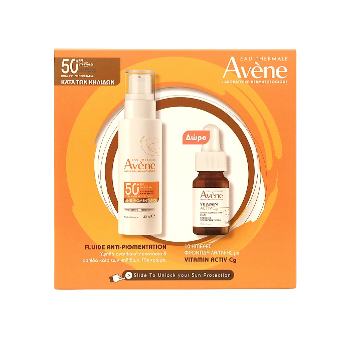 Avene Eau Thermale Promo Anti-Pigmentation Fluid SPF50+ & Vitamin Activ Cg Serum, Αντηλιακό Προσώπου με Αζελαϊκό οξύ [ΑzA] – 40ml & Δώρο Ορός Λάμψης – 10ml
