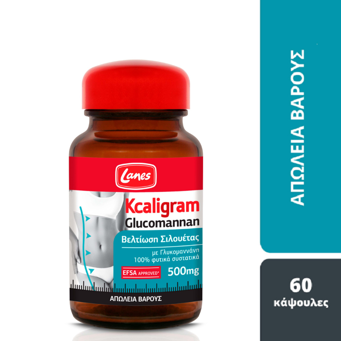 Lanes Kcaligram Glucomannan 500mg, Συμπλήρωμα Διατροφής για Βελτίωση της Σιλουέτας με Γλυκομαννάνη – 60 κάψουλες