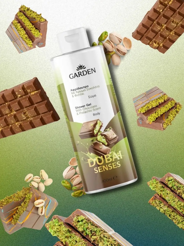Το ενυδατικό γαλάκτωμα με άρωμα σοκολάτας Ντουμπάι. Νότες ανατολής εμπνευσμένες από την πλούσια σοκολάτα Ντουμπάι, σε συνδυασμό με τραγανό φιστίκι, κρεμώδη βανίλια και ζεστή, λαχταριστή καραμέλα. Σύνθεση με βιολογικό έλαιο ελιάς και χυμό αλόης που ενισχύουν την ελαστικότητα, προσφέροντας εντατική ενυδάτωση και αντιοξειδωτική προστασία. Εμπλουτισμένο με προβιταμίνη Β5 με καταπραϋντική δράση, αφήνει το δέρμα λείο και απαλό. Απορροφάται εύκολα χωρίς να αφήνει ίχνη λιπαρότητας.